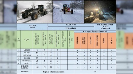 İl Özel İdaresinden alınan bilgiye göre, kent genelinde kar yağışı ve olumsuz hava şartları nedeniyle 109 köy yolu ulaşıma kapandı. Karla mücadele ekiplerinin aralıksız çalışmaları sonucunda 30 köy yolu yeniden ulaşıma açılırken, 79 köy yolunda ise çalışmalar devam ediyor.