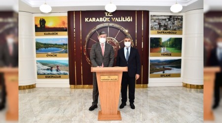 Karabük Valisi Fuat Gürel, Karabük Üniversitesinde düzenlenen etkinliklere katılmak üzere kente gelen Kazakistan Büyükelçisi Abzal Saparbekuly'u makamında kabul etti.