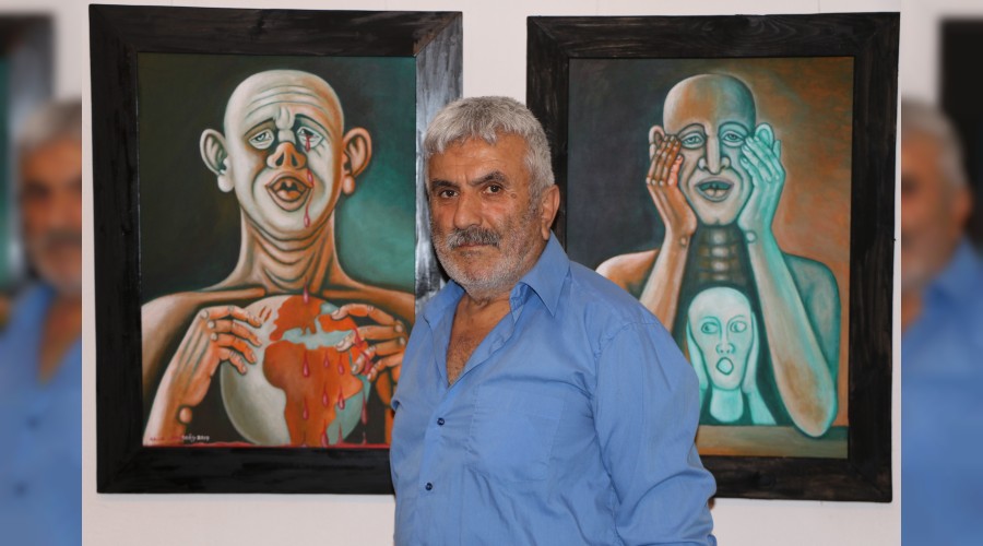 Karabük'te, ressam Recai Demirsöz, dünyada bir salgın yaşanacağını hissederek, "kanayan dünya" ve "çığlık atan insan" resimlerini yaptı.