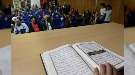 Karabük Hoca Ahmet Yesevi İmam Hatip Ortaokulu öğrencileri, Türk Silahlı Kuvvetleri'nin (TSK) Suriye Milli Ordusu'yla (SMO) birlikte Suriye'nin kuzeyinde PKK/YPG ve DEAŞ terör örgütlerine karşı başlattığı Barış Pınarı Harekatı için Fetih Suresi'ni kurken, harekata katılan Mehmetçik için dua etti.
