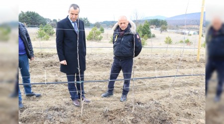 Yüklenici firma yetkilisi Mutlu Soylu ise, diktikleri fidanların ve sistemin tam bodur olduğunu ifade ederek, "Burada iki çeşit elma fidanı diktik. Biri kırmızı, diğeri sarı elma. İkisinin de dayanıklılığı uzun, soğuk hava defosuna. Burada üçüncü yılımızda bizim beklentimiz dekar başında 3 ton, 4 yılında ise dekar başına 6 tona kadar çıkıyor. Tam bodur elmadan çok ürün alıyoruz. Bunlar yeri az kaplayıp çok ürün veriyor. İnşallah üçüncü yılda tam randımanlı ürün almaya başlayacağız" dedi.
