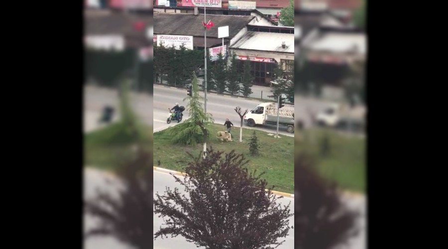Safranbolu ilçesinde Emek kavşağında üç sokak köpeği kavga etmeye başladı. Çevredeki bir kişi kavga eden köpekleri tekme ve tokat atarak ayırmaya çalışırken, o sırada motosikletiyle oradan geçen bir kişi de motosikletiyle kavgayı ayırmaya çalıştı. Bir vatandaş kavga eden köpekleri ayırmaya çalışırken, motosikletli kişi de korna çalıp motosikleti köpeklerin üzerine sürdü. Köpekler buna rağmen kavga etmeye devam ederken, sonrada gelen bir kişi de köpeği kuyruğundan çekip kavgayı ayırmaya çalıştı.