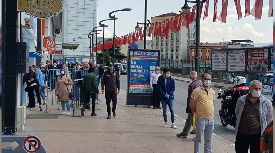 Hafta sonu korona virüsü salgını nedeniyle sokağa çıkma yasağı olmamasına rağmen 'Evde Kal' çağrılarına kayıtsız kalmayan Karabüklü vatandaşlar haftanın ilk gününde cadde ve sokaklarda yoğunluk oluşturdu. Banka önlerinde uzun kuyrukların oluşmasından dolayı devriye gezen motorlu yunus ekipleri, sürekli anons yaparak vatandaşları 'sosyal mesafe' kuralına uymalarını konusunda uyarılarda bulundu.